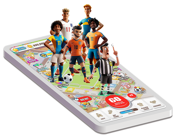 In SoccerGO, players manage their own football club within a dynamic board city environment.